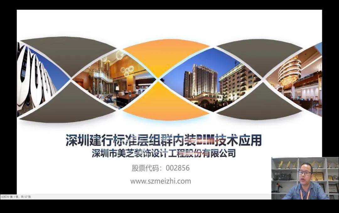 2020年10月15日,美芝股份研究院副院長廖世剖先生應(yīng)邀參加由中國建筑裝飾協(xié)會工業(yè)和信息化分會、中國建筑裝飾知行學院聯(lián)合主辦的數(shù)字裝飾線上直播,分享題為《深圳建行標準層組群內(nèi)裝BIM應(yīng)用介紹》。